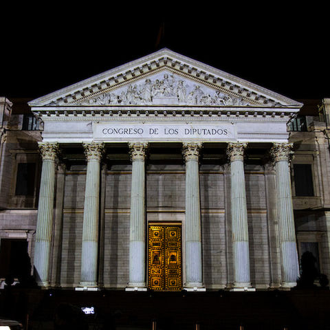 Projection mapping on the facade of the National Congress of Deputies in Madrid, created to celebrate the 40th anniversary of the Spanish Constitution. The piece offers a historical overview of key achievements from the past decades.